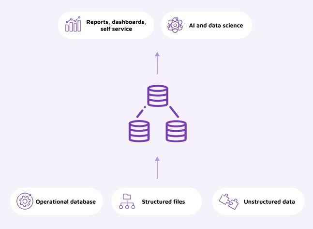 A data lakehouse or (augmented) a unified data and analytics platform is touted as the best of both worlds: the scalability and flexibility of data lakes and the reliability and consistency of data warehouses. It best fits organizations that want a centralized and unified structure for managing data, but it might not address all use cases. The technologies behind are still nascent, too, so despite maturing rapidly, its future costs, development, and maintenance might pose challenges.